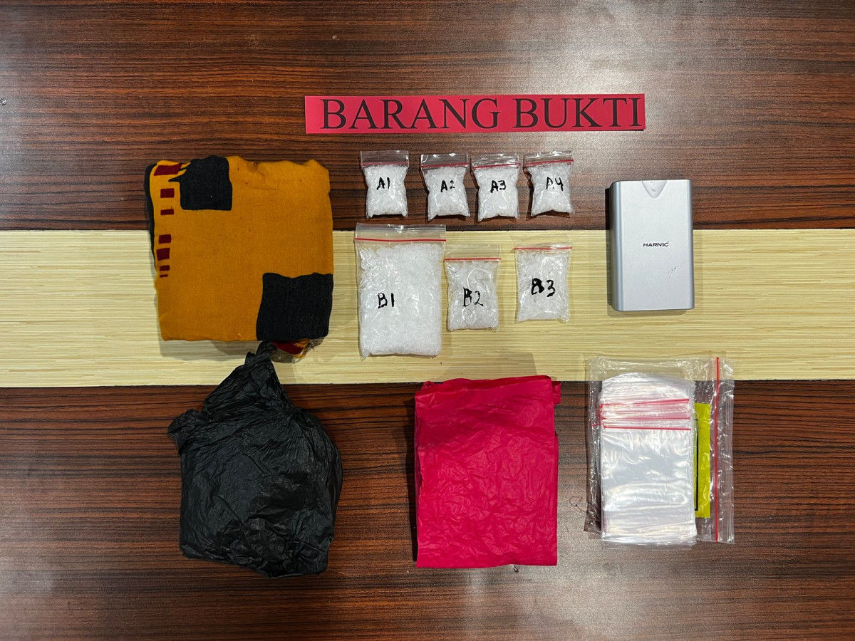 “Tim langsung bergerak ke rumah orangtua tersangka ke Desa Keiso. Di lokasi itu polisi menemukan satu plastik kantong kresek warna hitam yang di dalamnya terdapat plastik warna merah muda yang yang diduga berisi shabu sebanyak tiga sachet. Barang itu disimpan di belakang rumah orangtua tersangka,” kata Dwi Arif.