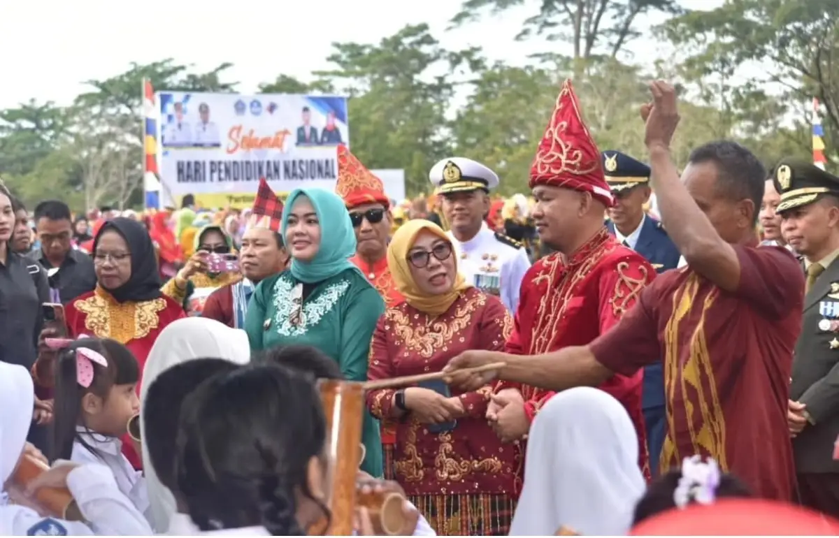 KENDARINEWS.COM-– Suasana Peringatan Hari Pendidikan Nasional (Hardiknas) 2025 di Kota Kendari semarak dengan nuansa keberagaman adat istiadat. Tak terkecuali Wali Kota Kendari Hj Siska Karina Imran tampil anggun saat memimpin upacara di Lapangan Balai Kota Kendari, Jumat (2/5/2025)