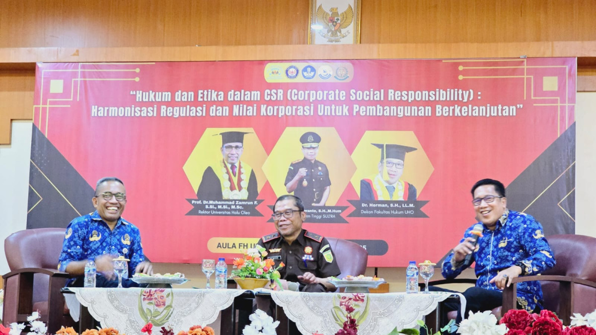 KENDARINEWS.COM— Universitas Halu Oleo (UHO) melalui Fakultas Hukum (FH) menggelar seminar dengan tema “Hukum dan Etika dalam Corporate Social Responsibility (CSR): Harmonisasi Regulasi dan Nilai Korporasi untuk Pembangunan Berkelanjutan” di Aula FH UHO, Selasa (20/5/2025).