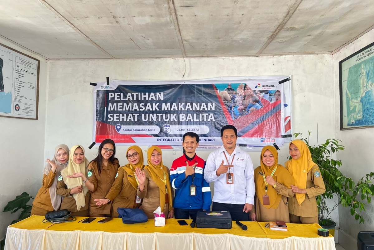 KENDARINEWS.COM—— Sebagai bentuk komitmen dalam mendukung peningkatan gizi anak dan pencegahan stunting, Pertamina Patra Niaga Integrated Terminal (IT) Kendari menyelenggarakan kegiatan Pelatihan Memasak Makanan Sehat untuk Balita melalui Program Gizi Mata Seimbang (GMS). Kegiatan ini berlangsung di Kelurahan Mata, Kecamatan Kendari, Kota Kendari.