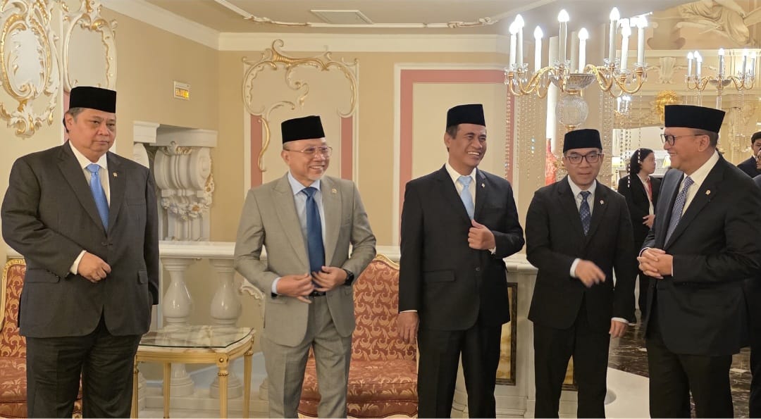 Rombongan kenegaraan turut diisi oleh sejumlah menteri Kabinet Merah Putih yang sudah tiba lebih dulu, termasuk Mentan Amran antara lain Menko Perekonomian Airlangga Hartarto, Menteri Pertahanan Sjafrie Sjamsoeddin, Menko Pangan Zulkifli Hasan, Menteri Investasi Rosan Roeslani, dan Menteri Pendidikan Tinggi, Sains, dan Teknologi Brian Yuliarto.