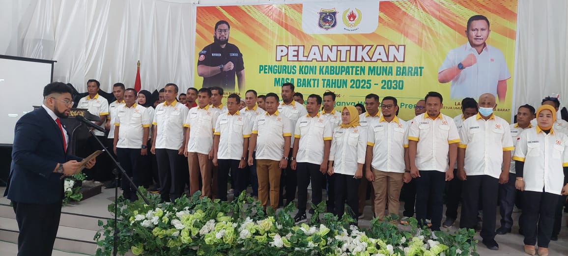 KENDARINEWS.COM—Ketua Umum Komite Olahraga Nasional Indonesia (KONI) Kabupaten Muna Barat (Mubar) La Ode Darwin menargetkan prestasi maksimal pada ajang Pekan p Provinsi (Porprov) ke-XV tingkat Sulawesi Tenggara (Sultra) pada 2026 mendatang. Tak tanggung-tanggung, pada event olahraga empat tahunan itu ia menargetkan Mubar masuk tiga besar perolehan medali. Hal itu diungkapkan setelah dirinya resmi dilantik menjadi Ketua Umum KONI Mubar periode 2025-2030 mendatang.
