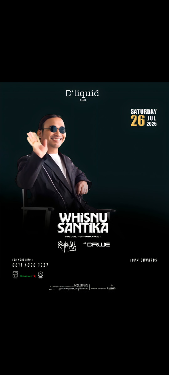 KENDARINEWS.COM—Wih, kabar gembira buat party animals di Kendari! Sabtu ini, (26/07/2025), D’Liquid bakal diserbu sama DJ kece internasional, Whisnu Santika! Gak cuma DJ biasa, ya! Doi ini legend banget, udah pernah manggung di Tomorrowland, lho! Bayangin aja, festival musik EDM segede itu