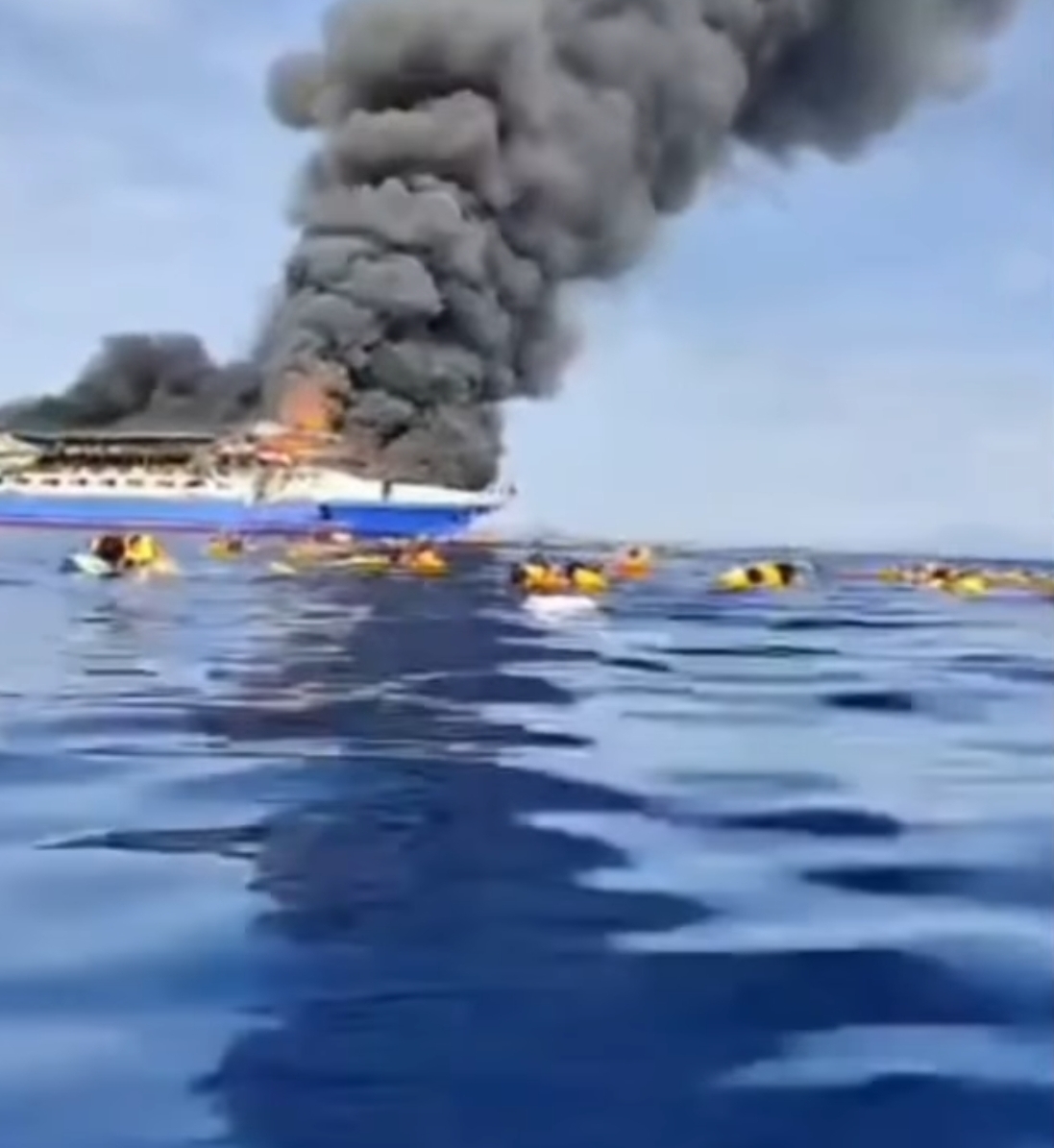 Selama kurang lebih satu jam, mereka berjuang melawan arus dan kobaran api di laut lepas hingga akhirnya tim SAR tiba memberikan pertolongan. “Kami sekarang sudah berada di Pulau Serei, Minahasa Utara, bersama sekitar 50 penumpang yang selamat. Beberapa korban langsung dijemput ambulans,” tambah Alwina. Rekaman siaran langsung yang diunggah di Facebook memperlihatkan sejumlah penumpang mengapung di laut dekat kapal yang terbakar.