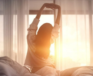 Begitu alarm berbunyi, duduk, gerakkan tubuh, dan tarik napas dalam 3–4 kali. Ini akan membantu mengaktifkan sistem saraf untuk bangun penuh.