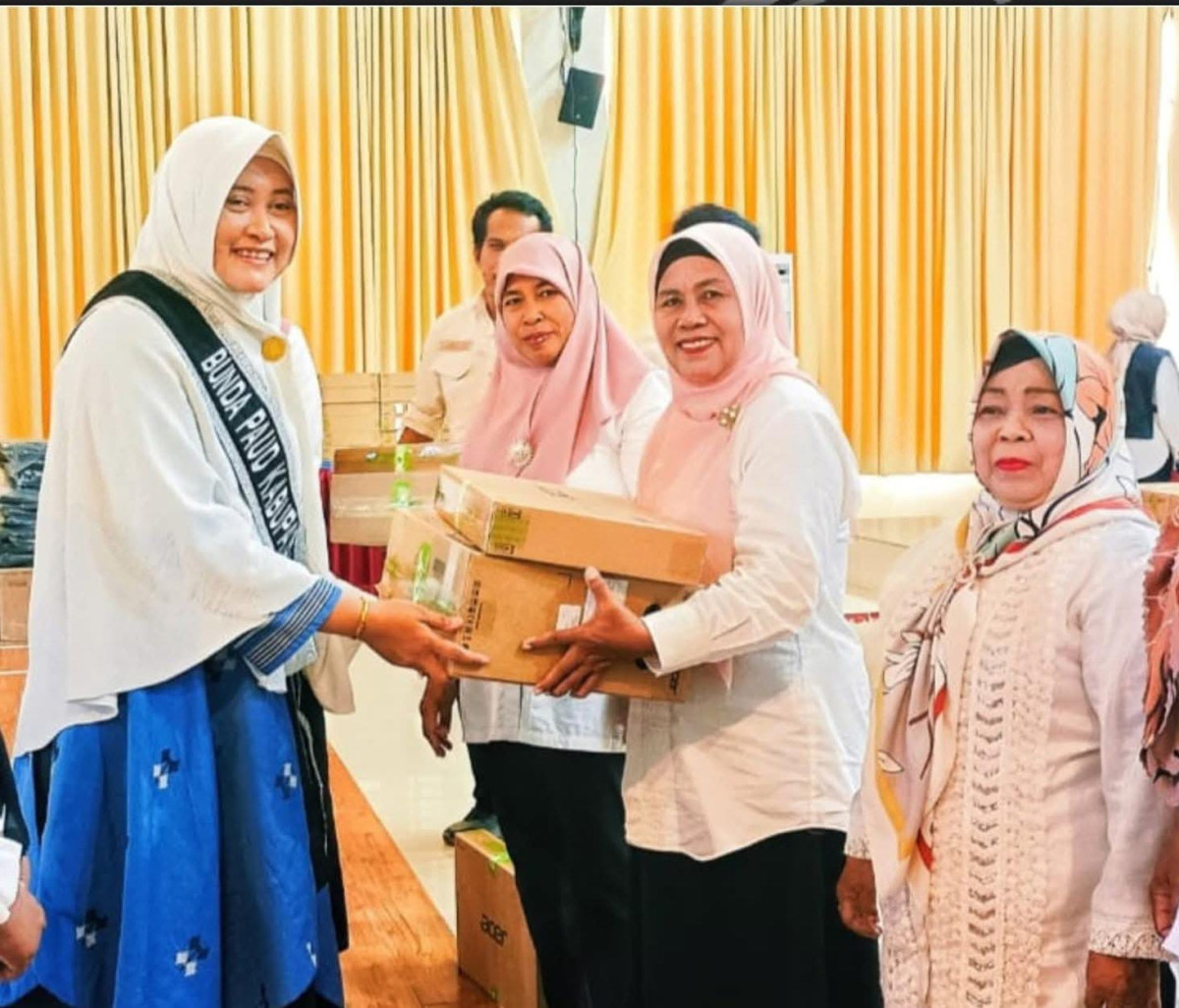 KENDARINEWS.COM– – Sebanyak 34 Taman Kanak-Kanak (TK) Negeri di enam kecamatan di Buton Tengah (Buteng) menerima bantuan berupa laptop dan proyektor. Bantuan ini bertujuan untuk meningkatkan kualitas pembelajaran dan mendukung perkembangan anak usia dini di wilayah tersebut. Penyerahan bantuan dilakukan langsung oleh Bunda Pendidikan Anak Usia Dini (PAUD) Buteng, Umi Noranah Azhari.