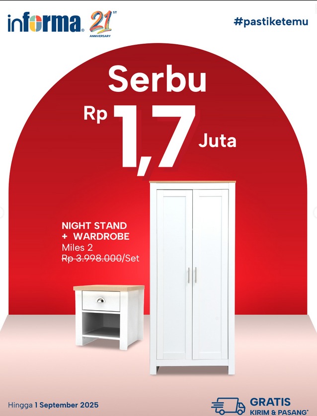 Ia menyampaikan, silakan manfaatkan juga program Belanja Gratis Pakai Poin Member Rewards, gratis kirim dan pasang spesial member, serta cicilan 0 persen hingga 24 bulan yang tersedia selama program ini. Bagi yang belum bergabung menjadi member Informa, nikmati berbagai keuntungan spesial dengan daftar sekarang melalui link: bit.ly/Registrasiinforma dan melalui