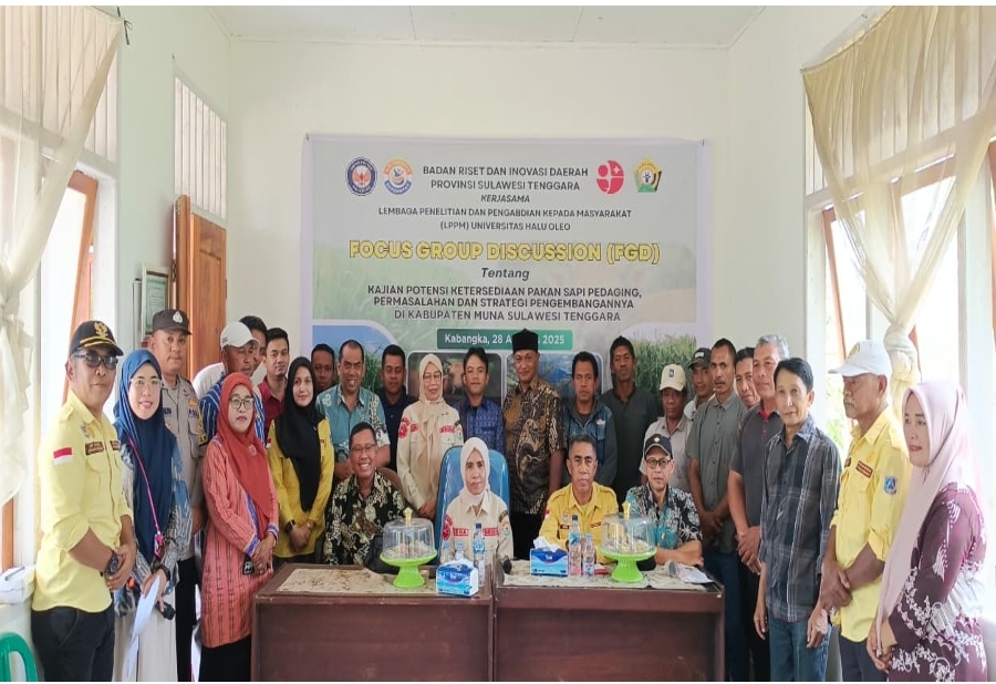 Kegiatan yang berlangsung pada 28 Agustus 2025 ini diinisiasi oleh BRIDA Provinsi Sulawesi Tenggara bekerja sama dengan Lembaga Penelitian dan Pengabdian Universitas Halu Oleo. Tujuannya adalah mengidentifikasi faktor-faktor pendukung dan penghambat ketersediaan pakan ternak sapi pedaging di Kabupaten Muna, dengan menghadirkan berbagai stakeholder yang dianggap dapat memberikan informasi yang tepat tentang pengembangan sapi pedaging dan ketersediaan pakannya.
