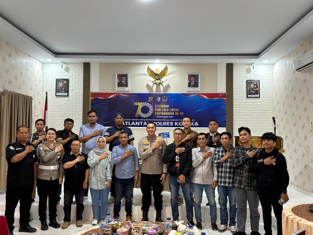 KENDARINEWS.COM – Semangat kebersamaan dan komitmen untuk menekan angka kecelakaan lalu lintas (lakalantas) mewarnai peringatan Hari Lalu Lintas Bhayangkara ke-70 yang digelar Satuan Lalu Lintas (Satlantas) Polres Kolaka. Acara syukuran yang berlangsung di Aula Kemitraan Polres Kolaka, Selasa (23/9), menjadi momentum penting untuk mempererat sinergitas dengan insan media, sebagai mitra strategis dalam mengedukasi masyarakat.