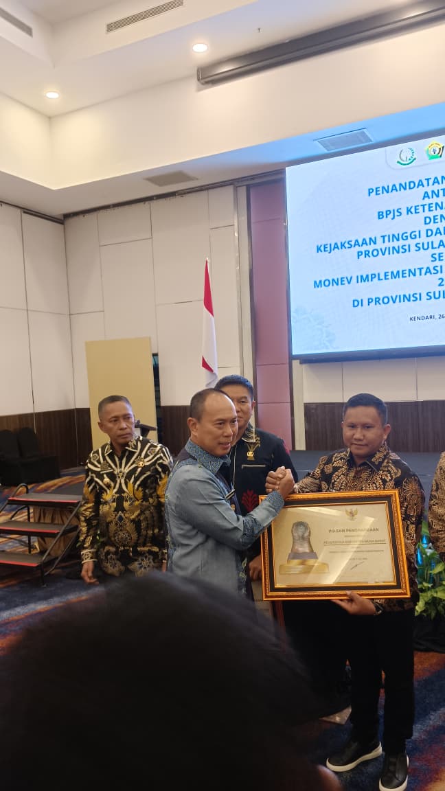 KENDARINEWS.COM–Kinerja Pemerintah Kabupaten (Pemkab) Muna Barat (Mubar) mendapat apresiasi. Pemkab Mubar kembali mendapat penghargaan Paritrana Award 2025 dari Badan Penyelenggara Jaminan Sosial (BPJS) Ketenagakerjaan. Penghargaan itu diberikan sebagai ganjaran atas kepedulian terhadap pekerja rentan. Yaitu dengan mendaftarkan masyarakat Mubar ke BPJS Ketenagakerjaan sebagai pekerja rentan.
