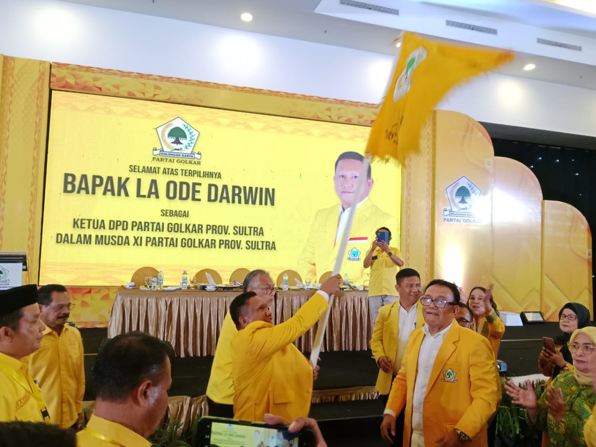 KENDARINEWS.COM- – La Ode Darwin, Bupati Muna Barat, resmi memegang kendali Partai Golkar Sulawesi Tenggara (Sultra) hingga tahun 2030! Terpilih secara aklamasi dalam Musda ke-XI Golkar Sultra, Darwin langsung tancap gas dengan target ambisius: mengembalikan kejayaan Golkar dan “MENGUASAI” Sultra