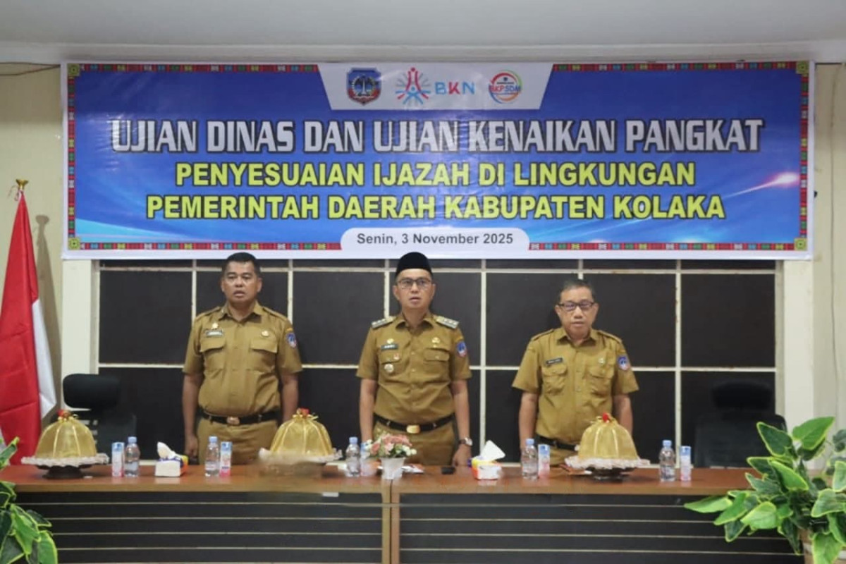 KENDARINEWS.COM — Dalam upaya meningkatkan kinerja birokrasi dan pelayanan publik, Bupati Kolaka Amri secara resmi membuka kegiatan Ujian Dinas dan Ujian Kenaikan Pangkat Penyesuaian Ijazah (PI) bagi Aparatur Sipil Negara (ASN) di lingkup Pemerintah Kabupaten Kolaka. Kegiatan ini digelar di aula Badan Kepegawaian dan Pengembangan Sumber Daya Manusia (BKPSDM) Kolaka pada Senin (3/11).