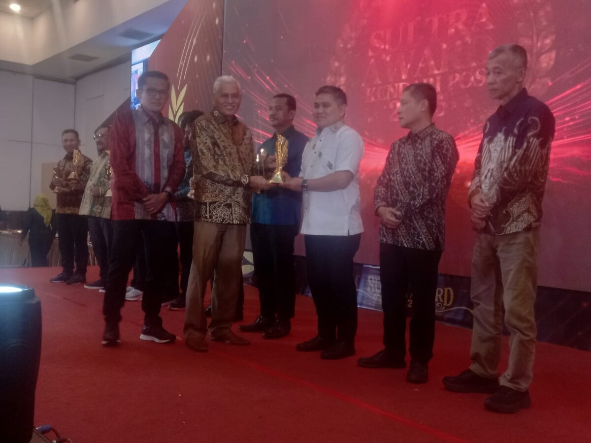 KENDARINEWS.COM– Bupati Kolaka, Amri meraih penghargaan Sultra Award Kendari Pos 2025, Rabu (12/11). Penghargaan tersebut diberikan oleh media Kendari Pos dalam rangka memperingati HUT media tersebut yang ke 30. Amri dianugerahi penghargaan oleh media pertama dan terbesar di Sultra tersebut untuk kategori tokoh pemimpin peduli dan pemerataan kesejahteraan masyarakat tahun 2025. Acara penyerahan penghargaan itu digelar di Hotel Claro Kendari.