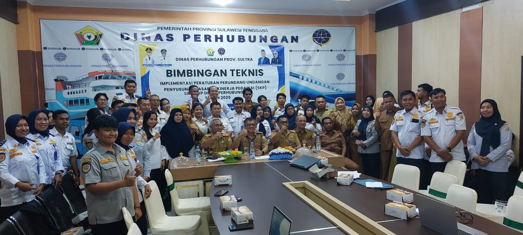 KENDARINEWS.COM— Dinas Perhubungan Provinsi Sulawesi Tenggara (Dishub Sultra) menggelar Bimbingan Teknis (Bimtek) Implementasi Peraturan Perundang-undangan terkait penyusunan Sasaran Kinerja Pegawai (SKP) untuk seluruh pegawai lingkup instansi tersebut tahun 2025. Kegiatan yang berlangsung di Kantor Dishub Sultra pada Selasa (2/12/2025) dibuka langsung oleh Kepala Dinas Perhubungan (Kadishub) Sultra, Dr. Muh. Rajulan, didampingi Sekretaris Dishub Sultra, Imran Husein.
