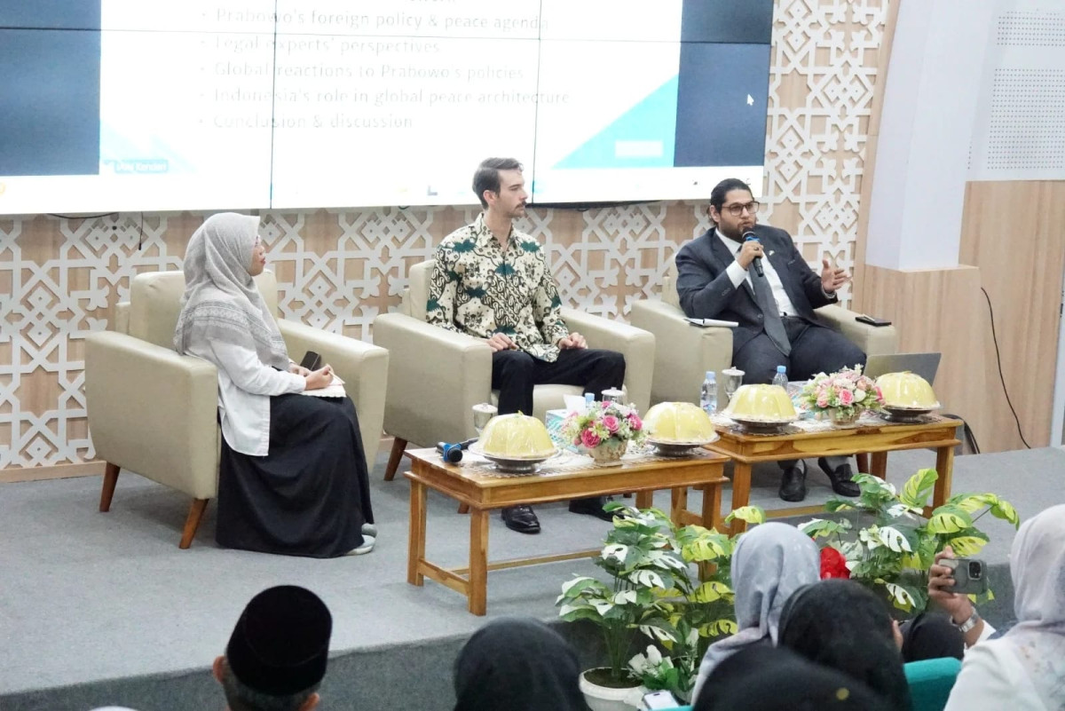 Dalam sesi pemaparan, para narasumber mengulas perspektif hukum internasional terhadap pendekatan Presiden Prabowo Subianto dalam mendorong perdamaian, khususnya terkait konflik Palestina. Mereka menilai bahwa sejak 1945 Indonesia konsisten menolak kolonialisme dan mendukung hak penentuan nasib sendiri bagi Palestina melalui diplomasi politik, bantuan kemanusiaan, serta keaktifan dalam forum internasional. Di era Presiden Prabowo, kebijakan luar negeri Indonesia dianggap tetap sejalan dengan konstitusi, namun dengan pendekatan yang lebih humaniter, pragmatis, dan efektif.