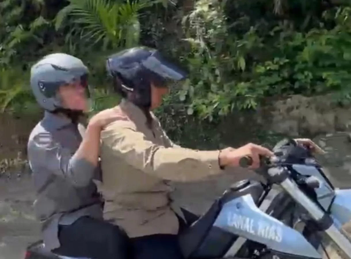 Wapres Gibran menempuh perjalanan dengan motor trail dari Polsek Gomo menuju titik rencana pembangunan jembatan. Di lokasi, ia menerima penjelasan langsung dari Wakil Menteri Pekerjaan Umum (PU) Diana Kusumastuti mengenai rencana pembangunan infrastruktur tersebut.