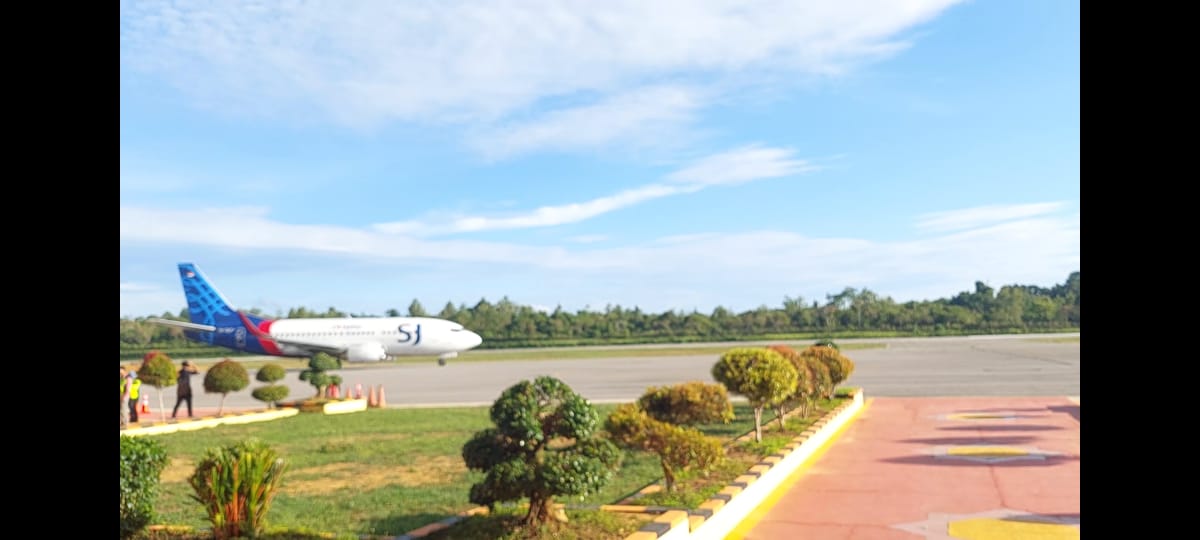 KENDARINEWS.COM– – Bandara Udara Sugimanuru Kabupaten Muna Barat resmi melayani penerbangan perdana rute Makassar-Muna Barat-Makassar yang dioperasikan oleh Sriwijaya Air dengan pesawat Boeing 737-500 pada Kamis (15/1/2026). Meskipun telah beroperasi, runway bandara yang saat ini memiliki panjang 1.600 meter dinilai belum memadai untuk standar pesawat jenis Boeing yang seharusnya menggunakan landasan pacu sepanjang 1.800 meter.