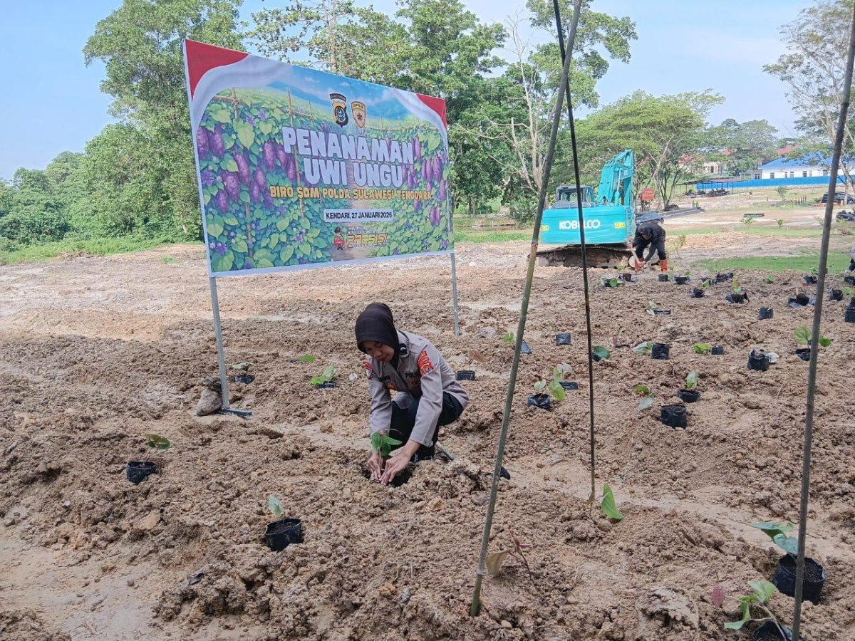 KENDARINEWS.COM– Polres Konawe Utara melalui Satuan Binmas (Sat Binmas) menanam 200 bibit uwi ungu dalam rangka implementasi program Bakomsus Ketahanan Pangan. Kegiatan berlangsung di lahan milik Brimob Polda Sultra pada Selasa (27/1/2026).