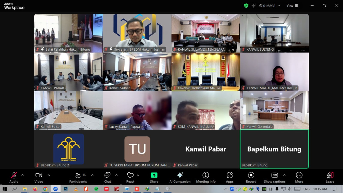 KENDARINEWS.COM-– Jajaran Kantor Wilayah Kementerian Hukum Sulawesi Tenggara (Kanwil Kemenkum Sultra) menghadiri pembukaan Pelatihan Transformasi Digital Angkatan I Tahun Anggaran 2026 secara virtual melalui Zoom Meeting dari Aula 1 Kantor Wilayah, Senin (09/02).