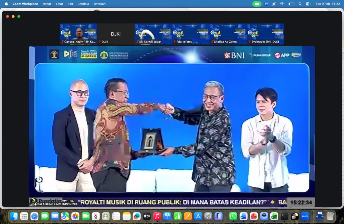 Diskusi dipandu secara interaktif dengan mengupas praktik royalti musik di ruang publik dari perspektif hukum, industri kreatif, dan keadilan sosial.