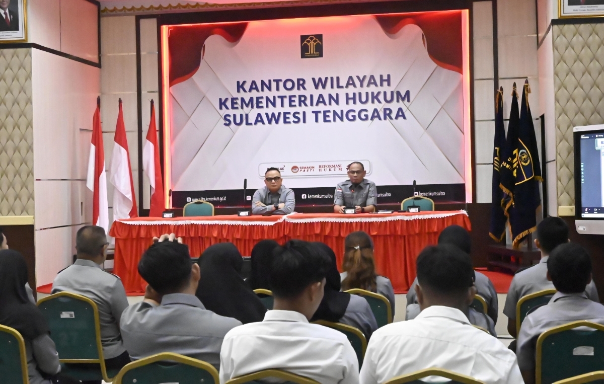 KENDARINEWS.COM-– Kepala Kantor Wilayah Kementerian Hukum Sulawesi Tenggara (Kanwil Kemenkum Sultra), Topan Sopuan, memberikan arahan awal tahun 2026 kepada jajaran Divisi Peraturan Perundang-Undangan dan Pembinaan Hukum (P3H). Arahan tersebut menitikberatkan pada penguatan pemahaman tugas dan fungsi, peningkatan disiplin, serta optimalisasi kolaborasi dalam mendukung capaian program strategis nasional. Selasa (24/02/2026)