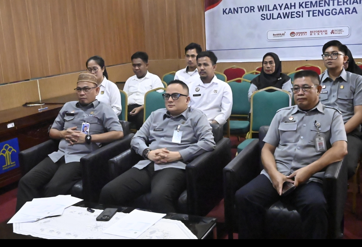 KENDARINEWS COM- – Kepala Kantor Wilayah Kementerian Hukum Sulawesi Tenggara (Kanwil Kemenkum Sultra), Topan Sopuan bersama Kepala Divisi Peraturan Perundang-undangan dan Pembinaan Hukum, Candrafriandi Achmad mengikuti secara daring Rapat Persiapan Peresmian Pos Bantuan Hukum (Posbankum) Desa/Kelurahan oleh Presiden Republik Indonesia. Kegiatan tersebut diselenggarakan oleh Badan Pembinaan Hukum Nasional (BPHN) Kementerian Hukum. Senin (23/02/2026)