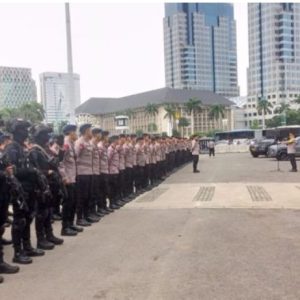 Personel Polri saat mengikuti apel untuk mengawasl aksi unjuk rasa di kawasan Monas, Jakarta Pusat, Senin (8/12/2025). ANTARA/HO-Humas Polres Jakpus. (jpnn)