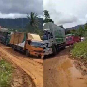 Jalan Trans Sulawesi di Kolaka Dipenuhi Lumpur, Antrean Kendaraan Mengular